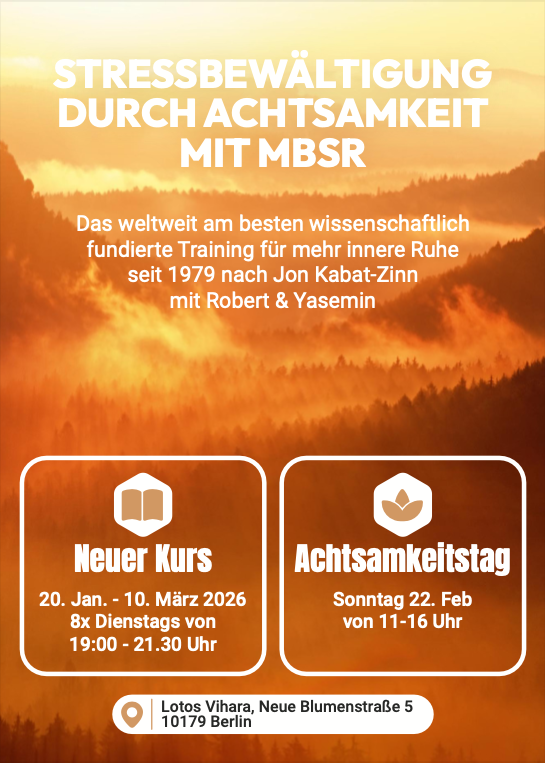 Aufbauend auf bewährten Methoden aus dem MBSR-Programm (Mindfulness-Based Stress Reduction), der Vipassana-Meditation und achtsamer Körperarbeit unterstützt dich der Kurs dabei, Stress abzubauen und langfristig innere Stärke zu entwickeln.